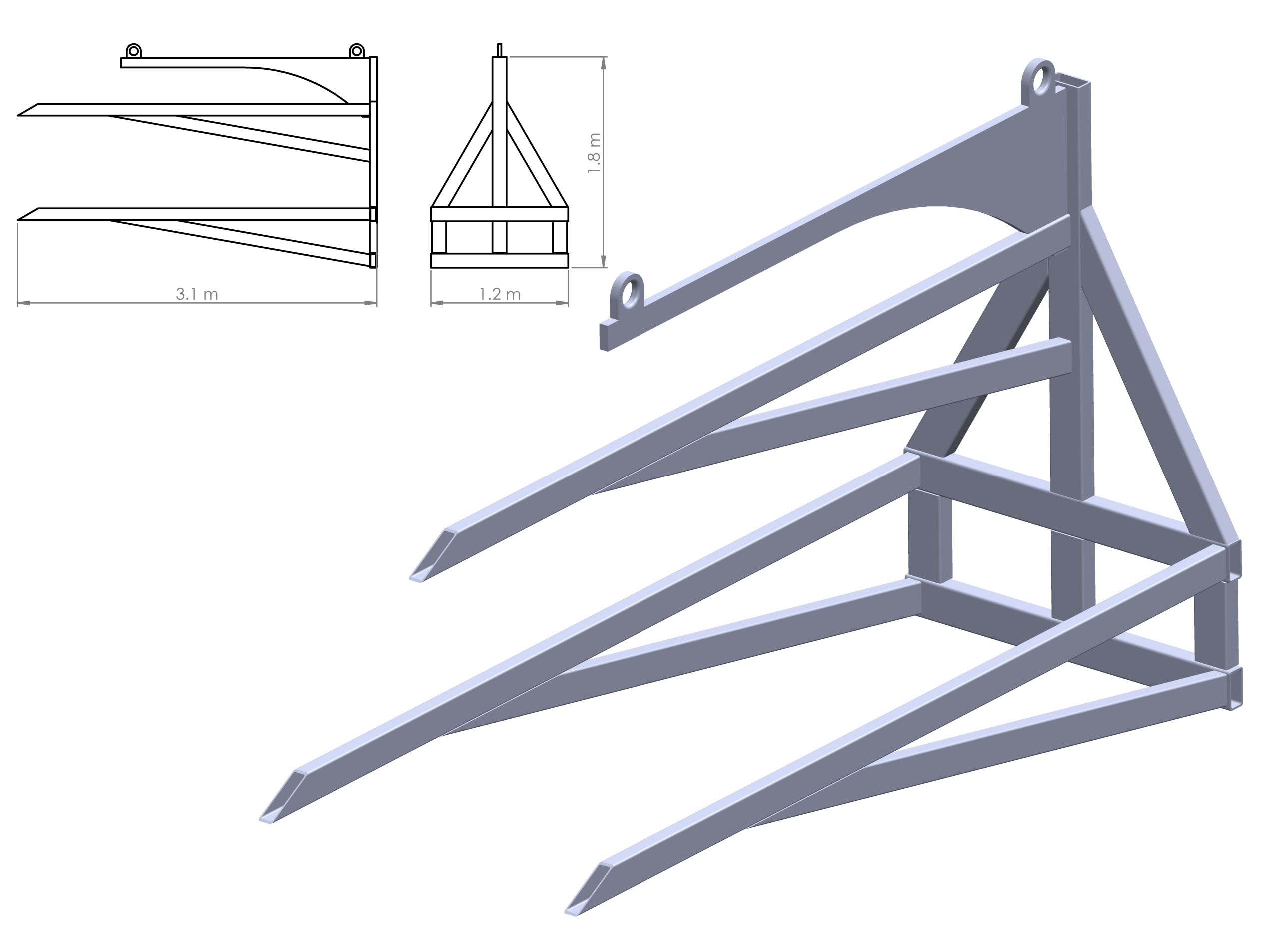 | 3 תלתליות (2+1) | מעמיס טלסקופי מסתובב עם יכולת הרמה של 4500 ק"ג | מתלה זרוע אחת × 5 מטר |