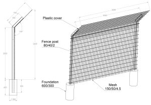 The fence is made of iron with a diameter of 4.5 mm, and it is available with two types of corrosion protection:
