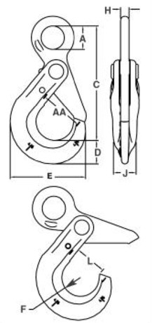 A (מ"מ) | C (מ"מ) | D (מ"מ) | E (מ"מ) | F (מ"מ) | H (מ"מ) | J (מ"מ) | L (מ"מ) | AA* (מ"מ) |