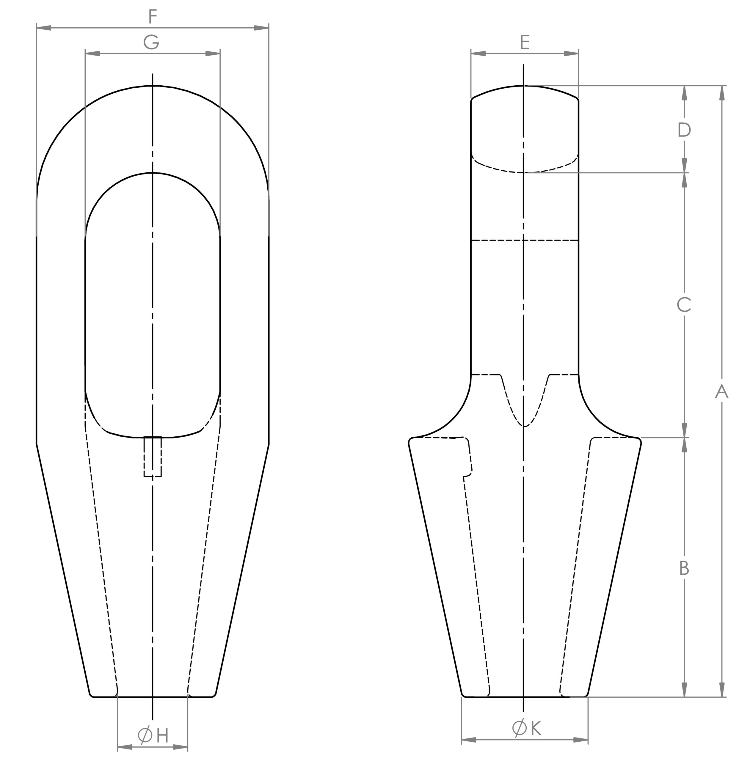 | מספר קטלוגי | חוזק שבירה מרבי (טון-מטר) | עבור כבל פלדה בקוטר (מ״מ) | סטרנד מבני בקוטר (מ״מ) | נפח שרף משוער (סמ״ק) | מידות (מ"מ) | משקל (ק״ג) | ||||||||