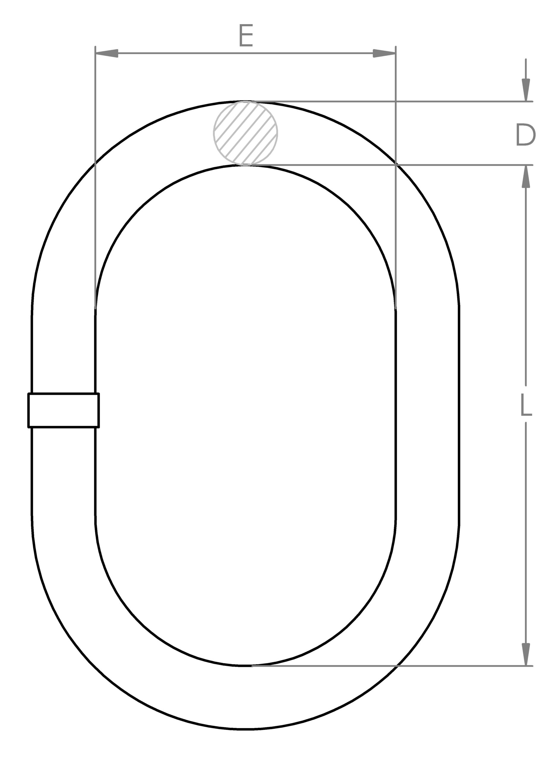 | מס' קטלוגי | עומס עבודה מותר (WLL) בטונות (מקדם בטיחות 5:1)) | L אורך | E מידה | D קוטר | משקל (ק״ג) | |