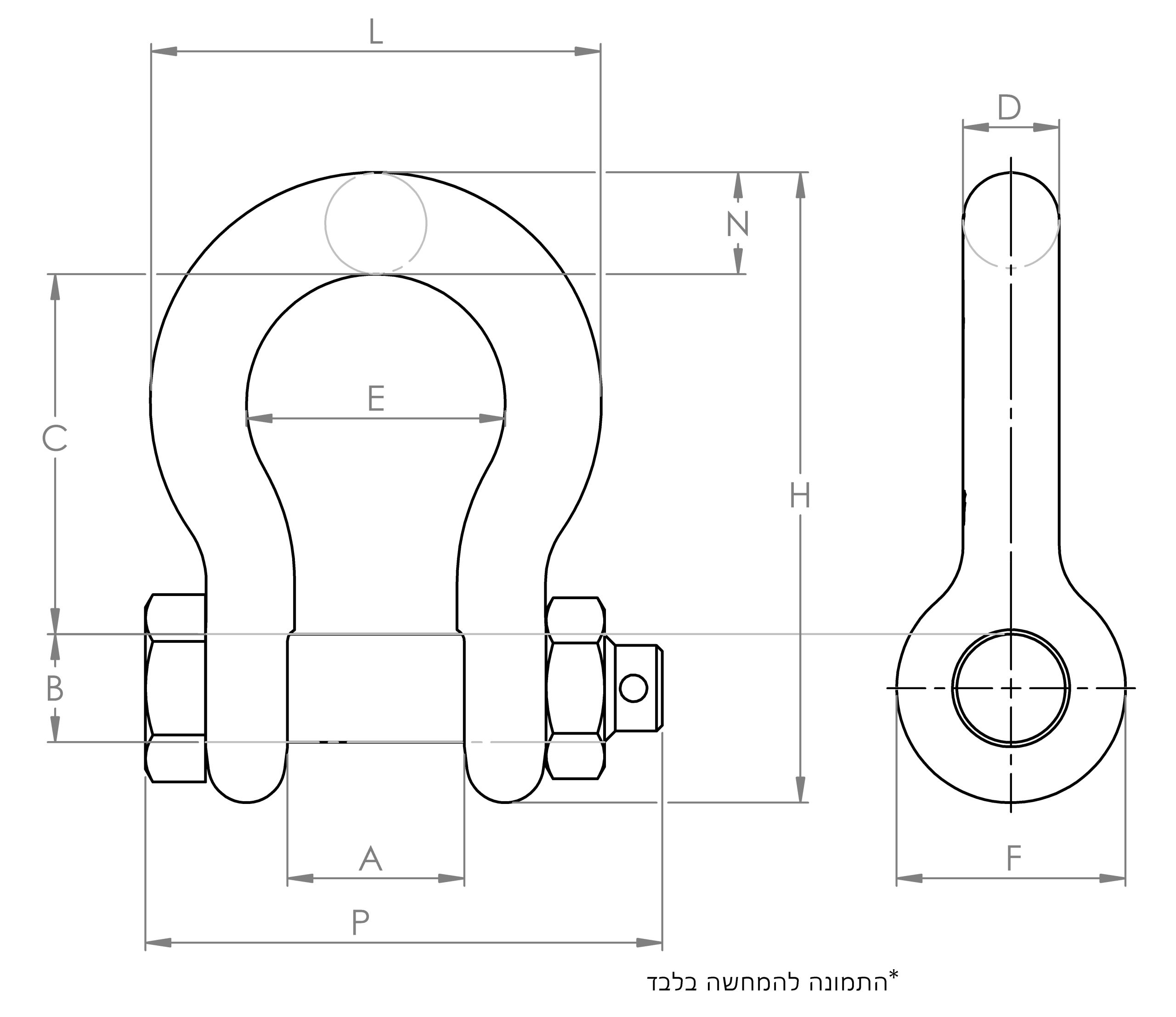 | מס' קטלוגי | קוטר (אינצ') | מגבלת עומס עבודה (t) | משקל ליח' (ק"ג) | מידות (מ"מ) | סובלנות (+/- מ"מ) | ||||||||||