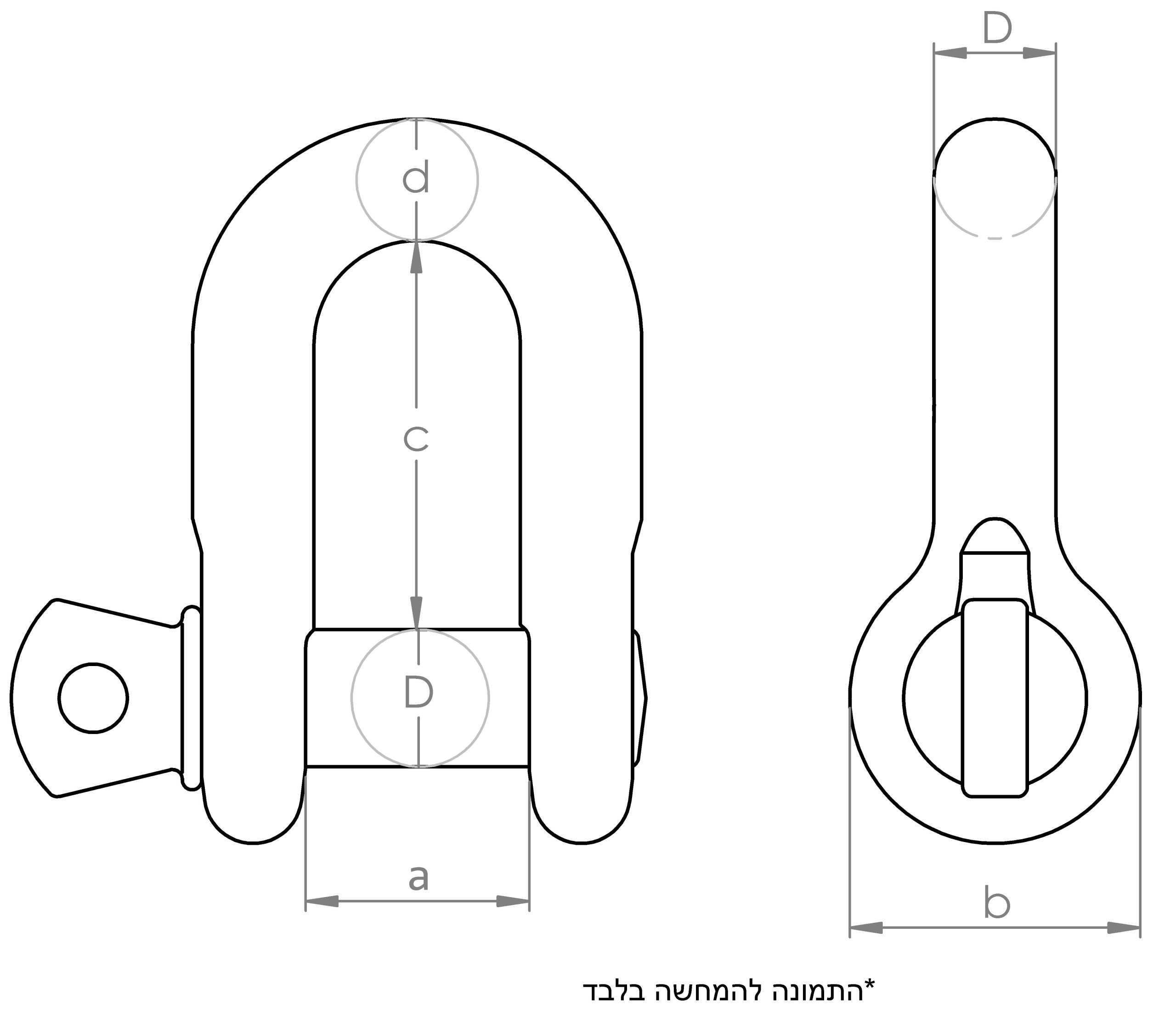 | מס' קטלוגי | D (מ"מ) | d (מ"מ) | a (מ"מ) | c (מ"מ) | b (מ"מ) | משקל ל100 יח' |
