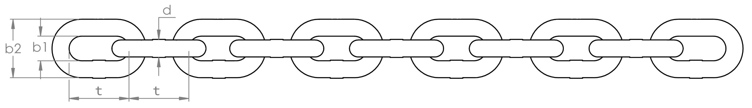 | אורך פנימי t | רוחב פנימי b1 (מ״מ) | רוחב חיצוני b2 (מ״מ) | אורך ל־11 חוליות (מ״מ) | עומס שבירה (ק״ג) | משקל למטר (ק״ג) | |||||