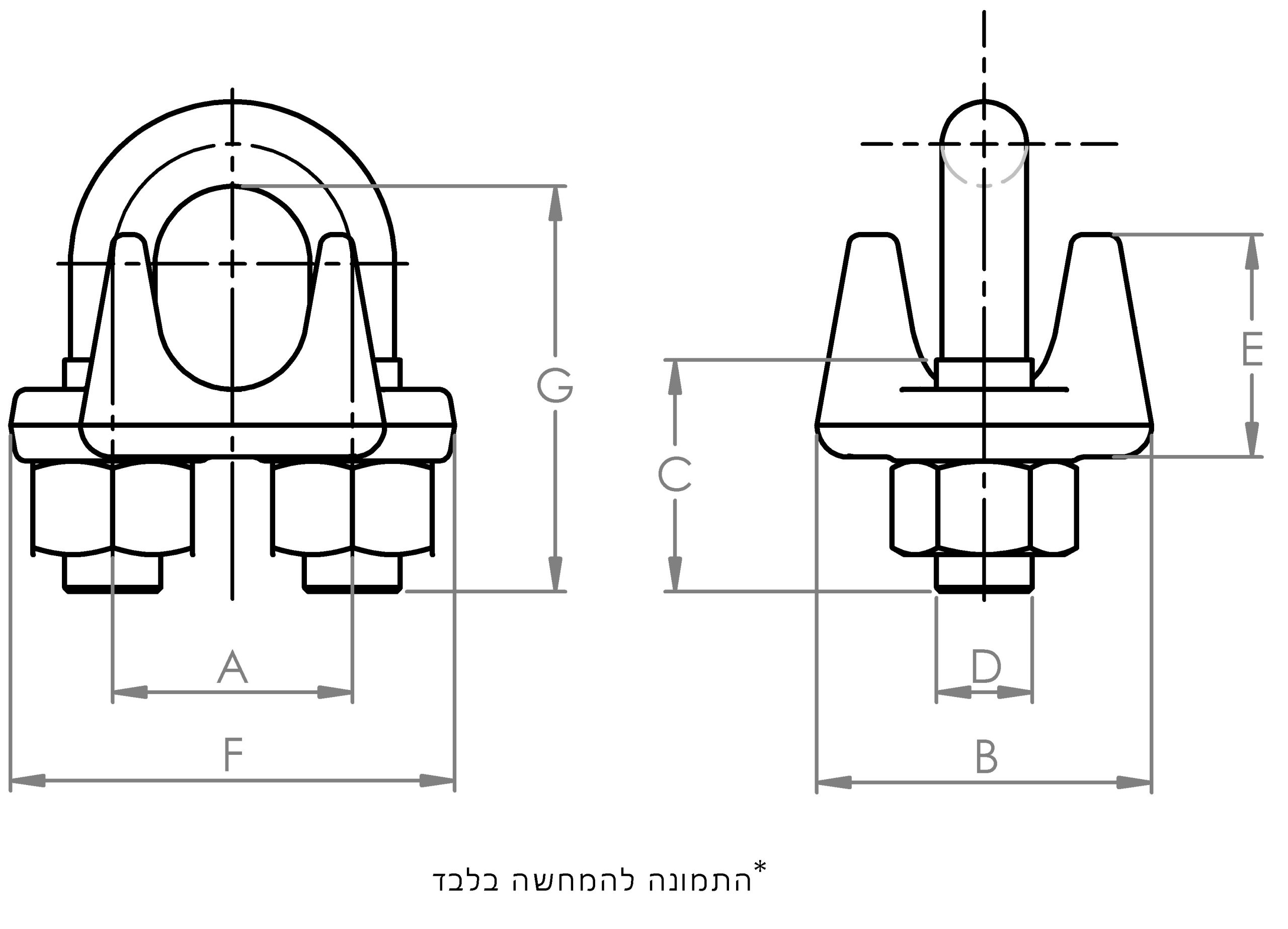 | גודל מהדק (מ"מ) | קוטר כבל (מ"מ) | מספר מינימלי של מהדקים | אורך קצה הכבל לסיבוב חזרה (מ"מ) | * מומנט הידוק (ניוטון-מטר) |