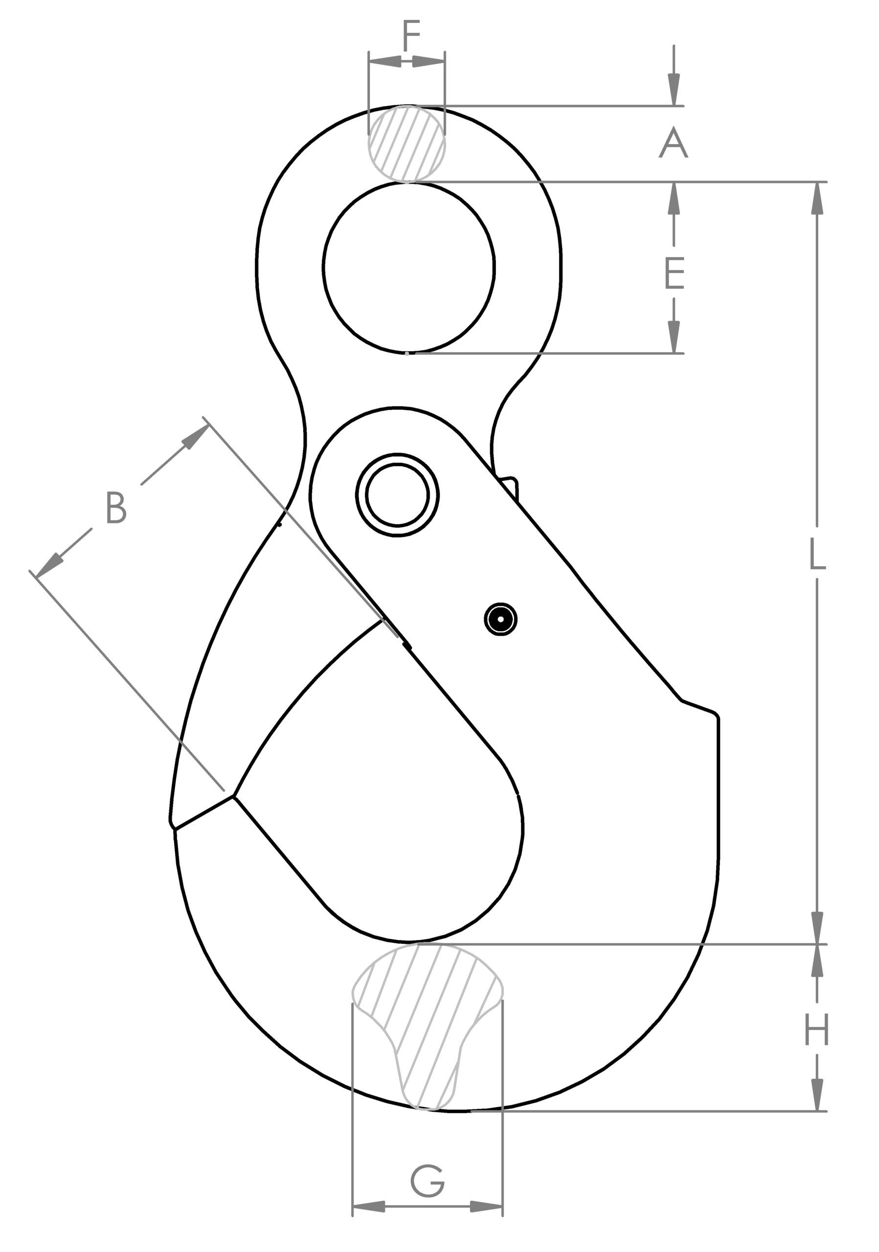 | מס' קטלוגי | עומס עבודה מרבי (טון) | A (מ"מ) | L (מ"מ) | B (מ"מ) | E (מ"מ) | F (מ"מ) | G (מ"מ) | H (מ"מ) | משקל kg |